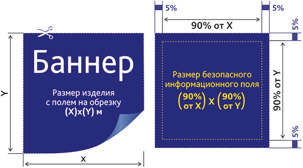 Размер безопасного информационного поля (где будет текст, логотип): (90% от Х) х (90% от Y) м;